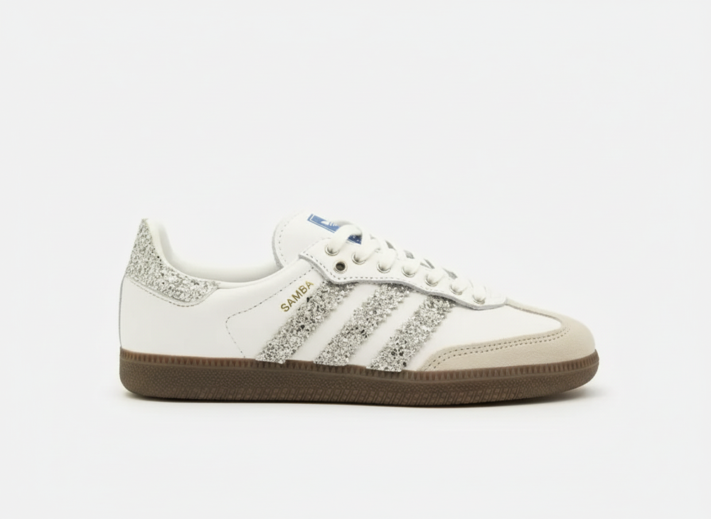 Adidas Samba Sneakers – Custom Silver Glitter Edition