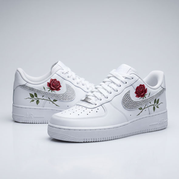 Classic white. Crimson roses. Crystals that catch every light in the room. The AF1 Red
