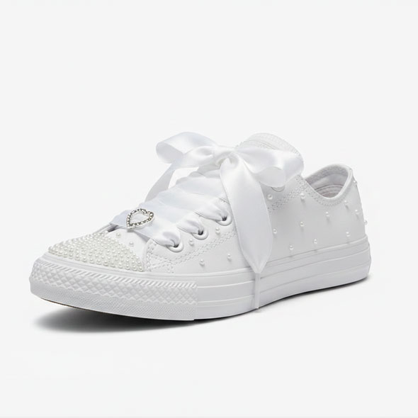 Step out in style on your special day with these stunning Romantic and elegant Converse sneakers adorned with beautiful pearls.