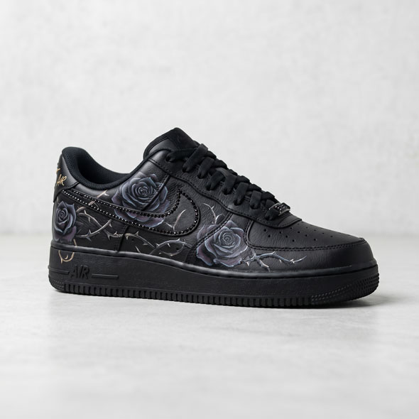 Rose and Thorn Nike Air Force 1 | Dark Romance Meets Street Art Beauty has an edge. The AF1 Rose & Thorn is a masterpiece for those who wear their depth on their feet — a classic black Air Force 1 brought to life with a hauntingly beautiful rose and thorn design in subtle, carefully blended tones.