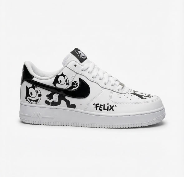 Step into classic nostalgia with a playful twist. Our Custom Nike Air Force 1 – Felix the Cat Edition reimagines the iconic AF1 silhouette with bold, vintage‑inspired artwork celebrating the timeless charm of Felix the Cat.