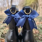 Add a unique and meaningful touch to your boots with our Personalised Blue satin Boot Bows. Perfect for alternative brides wearing Doc Martens on their special day or anyone looking to personalize their boots, these bows feature satin ribbons in your chosen colour and silver spring hooks for easy attachment.