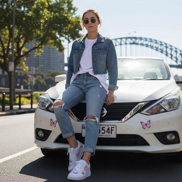 These Pink Butterfly Nike Af1 sneakers are a stunning and unique addition to your shoe collection. Each pair is customised with delicate pink butterflies and a pink swoosh, creating a beautiful and eye-catching design.