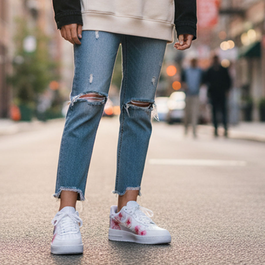 Step into effortless island energy with these custom Nike Air Force 1s, hand‑painted with soft pink frangipani flowers. Each bloom is delicately detailed, creating a fresh, tropical look that feels both feminine and bold. The clean white leather base makes the floral artwork pop, while keeping the classic AF1 silhouette timeless and versatile.