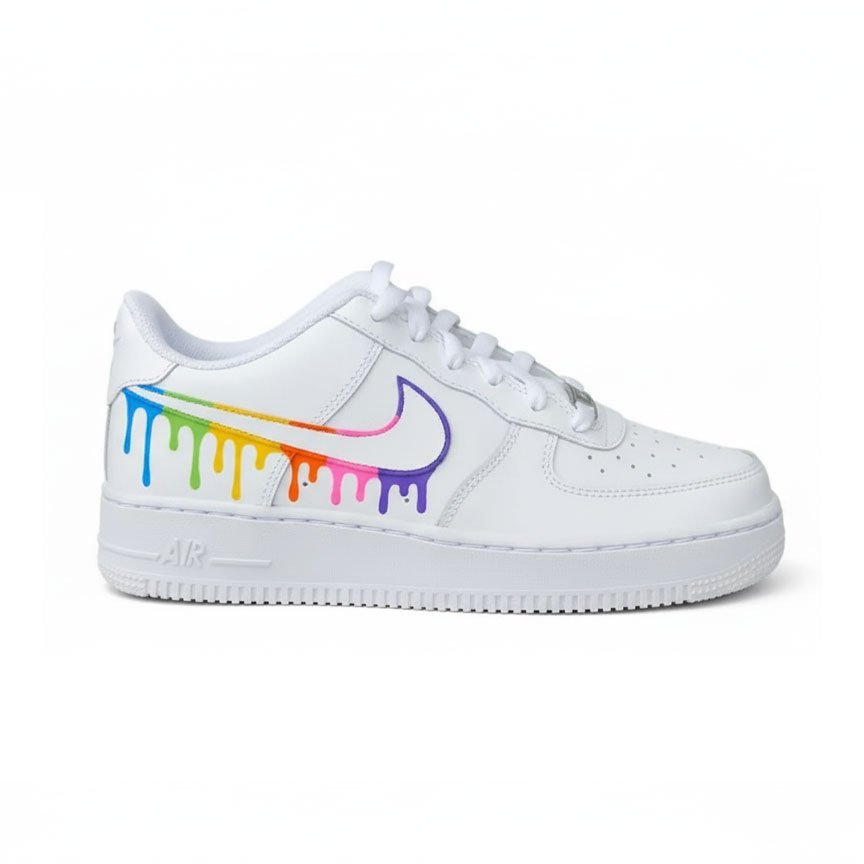 Rainbow Drippy Nike Swooshes – Custom Nike AF1 Sneakers with Hand-Painted